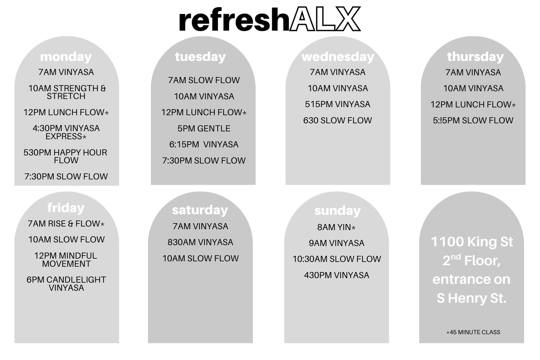 Whether you’re looking to start or deepen your practice, we have classes to meet you exactly where you are. Our yoga classes are held in person in our Old Town ALX studio, but we do still maintain a robust library of classes and workshops on demand as well as feature regular workshops and special events.